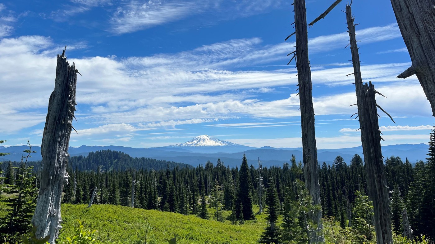 Day 4 - Butte Camp to June Lake was much better than I was expecting. Our first three days were bluebird skies and our last day was partly cloudy. We were thankful for the clouds since this was boulder day. Most of our hiking time on the Loowit was spent on the three sections of boulders. We saw LOTS of trail runners and a few backpackers. Nearly everyone asked about the water situation which we saw none. Butte Camp was the only reliable water source between June Lake and the South Toutle River on the southwest side of the mountain but there was a fair amount of snow in this stretch. We breaked at Chocolate Falls which wasn't running before we tackled the longest batch of boulders. The boulders were exhausting and hard on the knees with the constant jarring. We were thankful to get out of them. There was one final obstacle on the segment between the end of the boulders and the June Lake trail and it was a huge tree! We were out of energy so we just went around it but you could also see that people were going over it. We were ending our trip on a Saturday so we passed lots of day hikers going to June Lake. This section took us 7 hours and we finished around 2pm. Thank you to whoever cleared the blowdowns leading to June Lake. The ones we stepped over on our first day were now gone! Back at the trailhead we took our time changing and complimenting each other on a long journey.