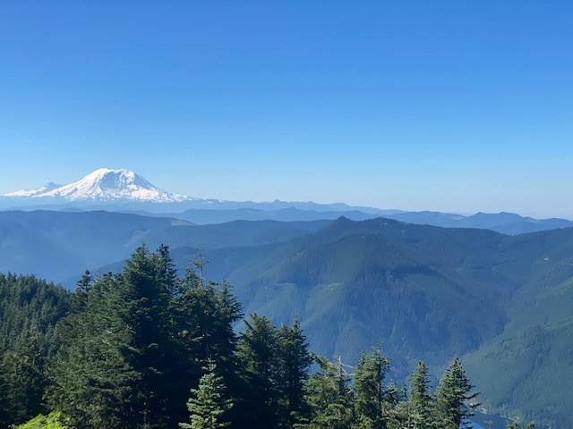 Lovely, hot day, this was a solo trail run. Started just before 9:00 AM. The trail was uncrowded, passed only a few people. The first section after the Palouse to Cascades State Park Trail is quite rocky with softball sized rocks but the trail becomes more manageable quickly. Mostly shaded with just a few patches of unprotected sun. There were a few mosquitos at the very top. Great views all around. Saw a few runners competing in the Jack & Jill's Downhill Marathon on the gravel trail.