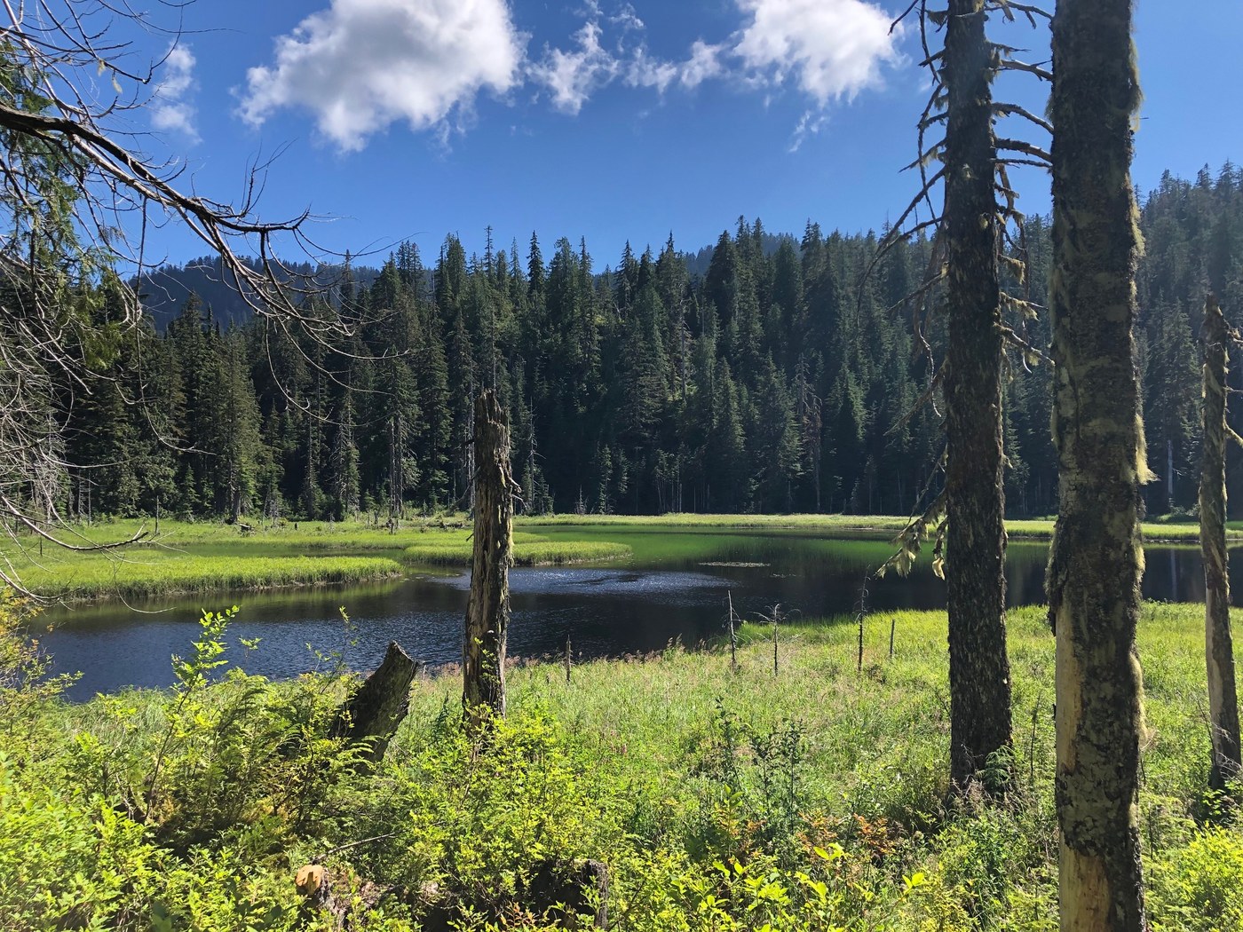 Had to move out of state for work. Desperately missed the PNW and needed a long weekend back to recharge. The WTA is a special organization and the community it helps create is unrivaled. The trail descriptions and trip reports are so much more helpful than other platforms. Took advantage of the opportunity to visit home and rented an SUV to hit some trails we couldn't with a sedan when we lived in state. Ashland Lakes was one. Glad we never tried the road with our Civic. It's awful. Even with a high clearance vehicle we still bottomed out. Plan for a 40-45 minute drive after you get off Mountain Loop Highway. The road is also narrow in addition to being rough. Encountering another vehicle requires significant car ballet in some spots. Eventually made it to the trailhead. Only three other vehicles there. As others have reported, the toilet at the trailhead is closed. The trail itself is in great shape. All three lakes were beautiful. Bugs were present but not aggressive. Lunched at Lower Ashland Lake and headed back. Wanted to loop around the other side of Upper Ashland Lake on the way back, but there was not a clear way across the lake outlet. Some logs there but water levels are high. We went back the way we came and tried the trail from the other side of Upper Ashland Lake, but it is clearly not as well maintained and so we turned around. In all, was a gorgeous hike on a perfect PNW day.