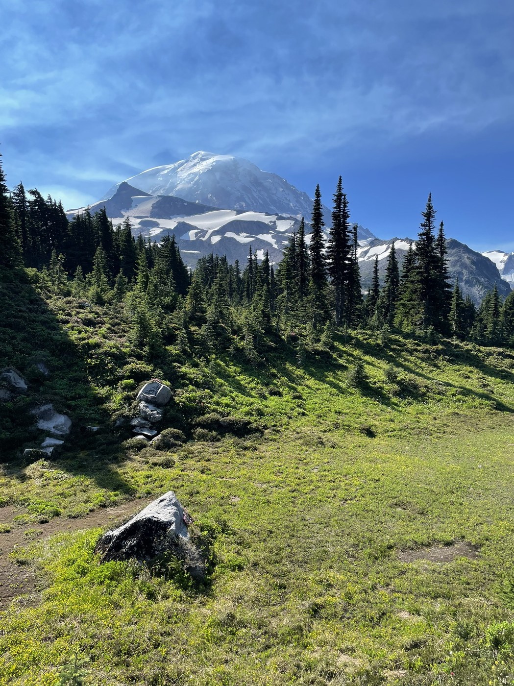 One of my favorite hikes. The road in is long and rough but not too many potholes thankfully. The trail is in good condition. Once you break out of the trees and enter Spray Park it feels like you’ve entered another world. Rainier was out and there were lots of wildflowers, streams and views to enjoy. No bears this time, though I heard others saw one off in the distance. Bugs were an annoyance, I really couldn’t stop otherwise they would swarm me.