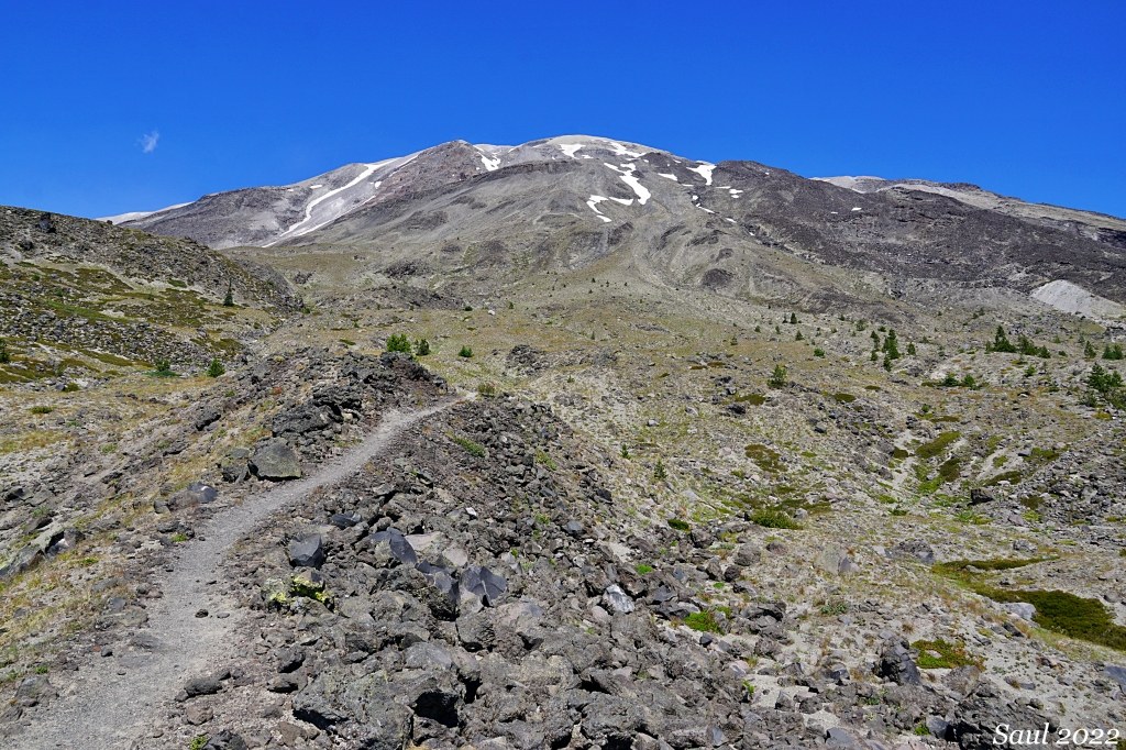 We took photos and looked around for late-blooming wildflowers along the Loowit Trail before returning the way we came.