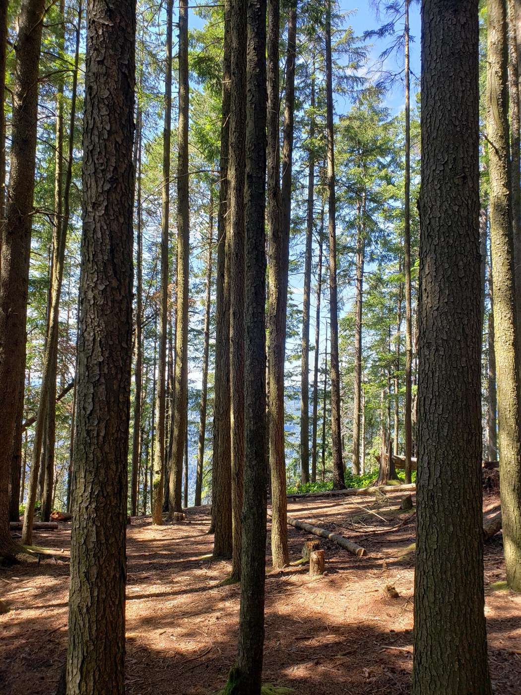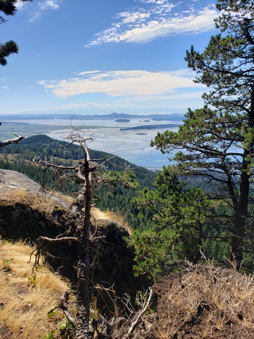 Lots of ripe red huckleberry, Oregon grape, salal, thimbleberry, general blackberries/brambles, and (at least) one black raspberry plant. Most of the hike was shaded, which I always appreciate. We started at 12:30pm from Samish overlook and made it to oyster dome by 2:15pm via Samish Bay trail. After resting and enjoying the view at the top for about 30 minutes we began our descent. We made it back to the car by 4:15pm by backtracking the same route. For reference, my partner has iffy knees so we take the descending sections fairly slowly. This trail was definitely a good workout but the view from the top wasn't necessarily a big payoff when we had the same view from the parking lot.