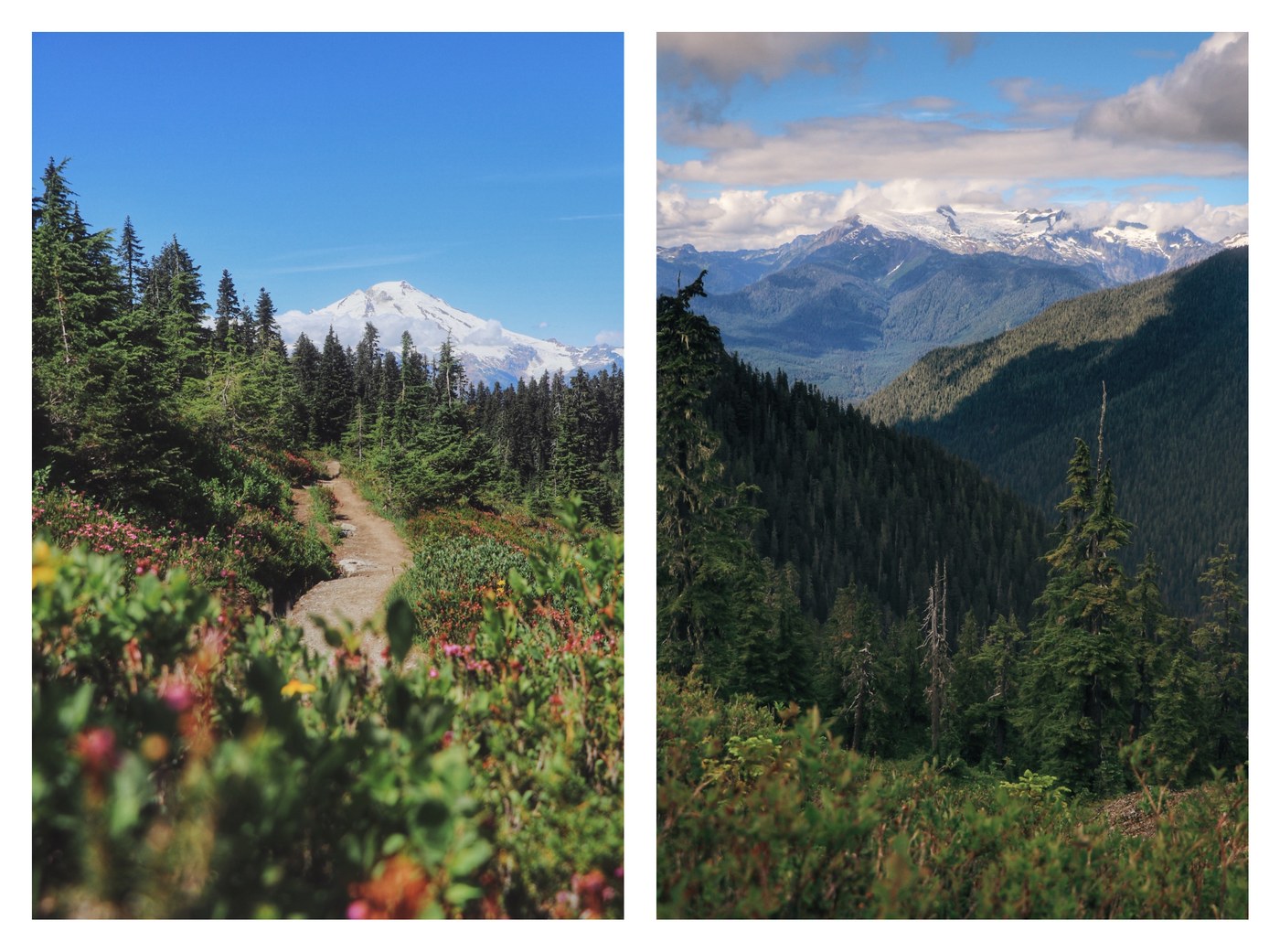 After sitting for a sec, we decided that it was time to hike out. On the way out, we were greeted by Baker once again. The weather was a lot nicer so we actually could see the entire mountain. Accompanied by the meadow with blooming wildflowers, the hike out couldn't be any better.