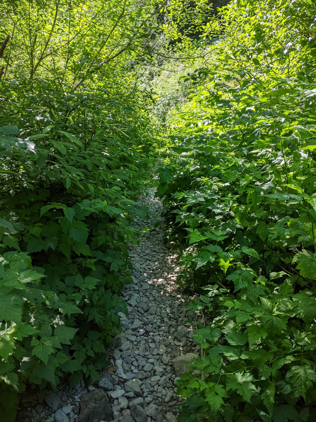 Parking lot practically empty at 9:00AM. Bathroom well stocked. I saw no one on this hike for four hours - between leaving the car and about halfway back. This is a remarkable thing for a trail so close to Seattle. The tree cover on this hike is almost uninterrupted, right to the top, and welcome on a hot day. Another good thing - probably the best thing about the trip - is the relative solitude. The things I didn't like included the trail condition (enough loose rocks to force me to watch every footstep), the scrubby, uninteresting forest, and the sorry lack of vistas; except for a view of Rainier and Chester Morse lake, a hundred yards from the top, and a view north to Mt. Si from the tree-shrouded "summit," there was little to see.