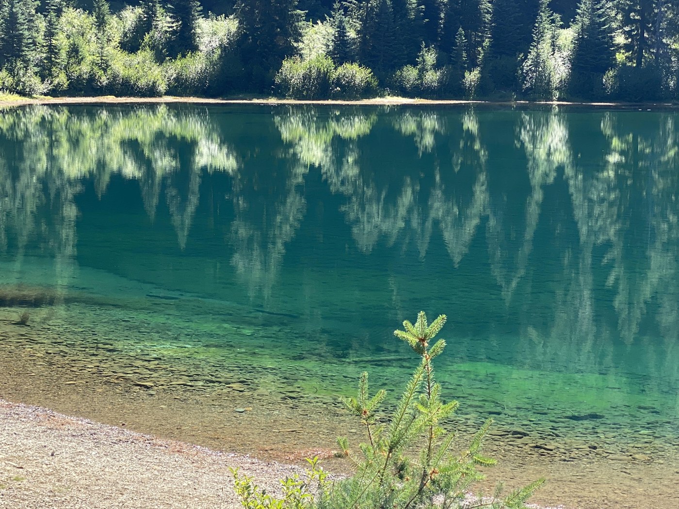 Driving directions spot on. Gravel road has quite a few pot holes, take your time if you have a low clearance vehicle. Parking lot is paved with plenty of parking. Parking lot was filled when we arrived close to noon, but parked along the roadside, in the shade. NW Forest pass or America the beautiful required. There is a fee box to pay also. Pit potty with one potty. Trail is paved or boardwalk the whole way around. Nice, pleasant walk for out of town visitors who did not feel up to anything rigorous or with elevation. Lots of families on the trail today. Some flowers, water was a beautiful green/blue and so clear.