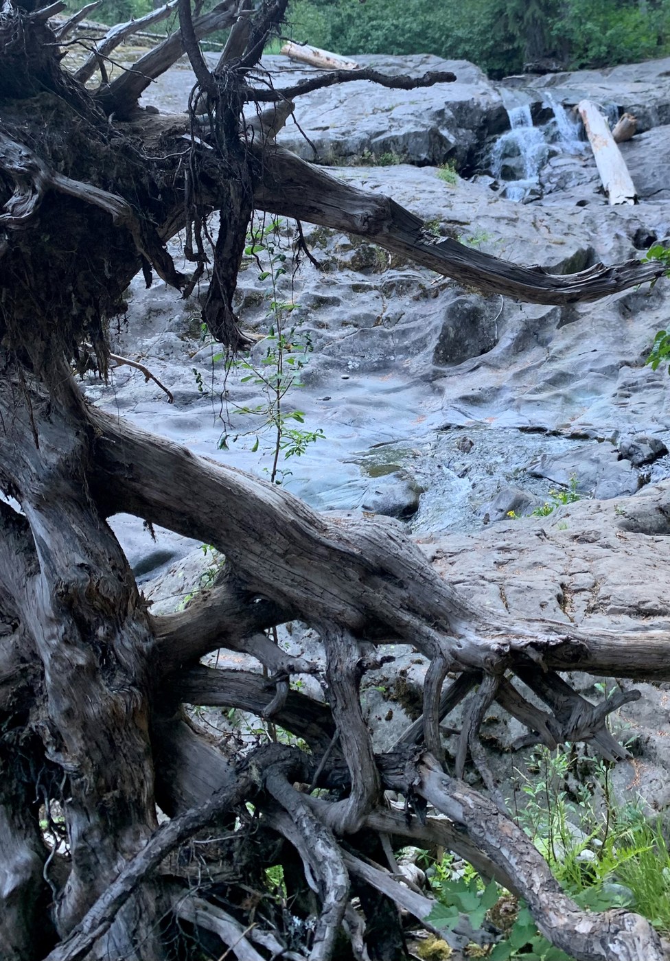 I told everyone in my group as they were huffing and puffing up the last quarter mile of rugged terrain to Rachel Lake - you got to read the fine print of the WTA descriptions and at least two trip reports! Then, you won't be surprised by almost 2000 feet in elevation gain at the last quarter mile. The first 2 and a half miles of this trail is lovely walk verdant, shaded path accompanied by a babbling creek and a few sweet waterfalls. There's an initial ascent just to get you warmed up and then it levels out beautifully as a peaceful, sun dappled, tree-lined dusty trail. Oh, and berries! Berries are ripe galore! You do want to make noise as bears do really like berries. This Sunday was well populated with very happy hikers and many had their very sweet dogs (on-leash, thank you!) so, I felt pretty safe. But, oh, boy oh boy, that last quarter mile. Nothing but boulders and tree roots all the way up, up, up! Nature's stairway to heaven for sure. Because Rachel Lake is stunningingly beautiful and swimmable. (Is that a word?) As half our group headed up to Alta Mountain, the rest of us waded in the cool mountain waters It was nice to take off the boots for a minute, lounging after lunch in the warm sun.
