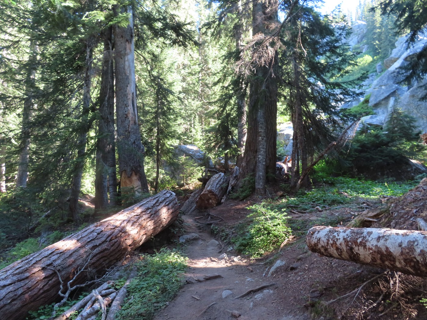 When I arrived at the Smith Brook Trail trailhead there were only a few other cars. When I got back in the afternoon the place was packed with lots of cars parked along the road. Most of these hikers were going to Lake Valhalla. The first 1/4 mile of the trail needs to be brushed out. Note there is no restroom at this trailhead. With as popular as this trail is you would think the Forest Service would have installed a one by now. They have three for the Iron Goat Trail. Once I got up to the trail junction with the PCT at Union Gap I turned right to head north on the PCT. After a short snack break, I started down the trail on my search for the old junction with the Cascade Crest Trail about a mile from Union Gap.