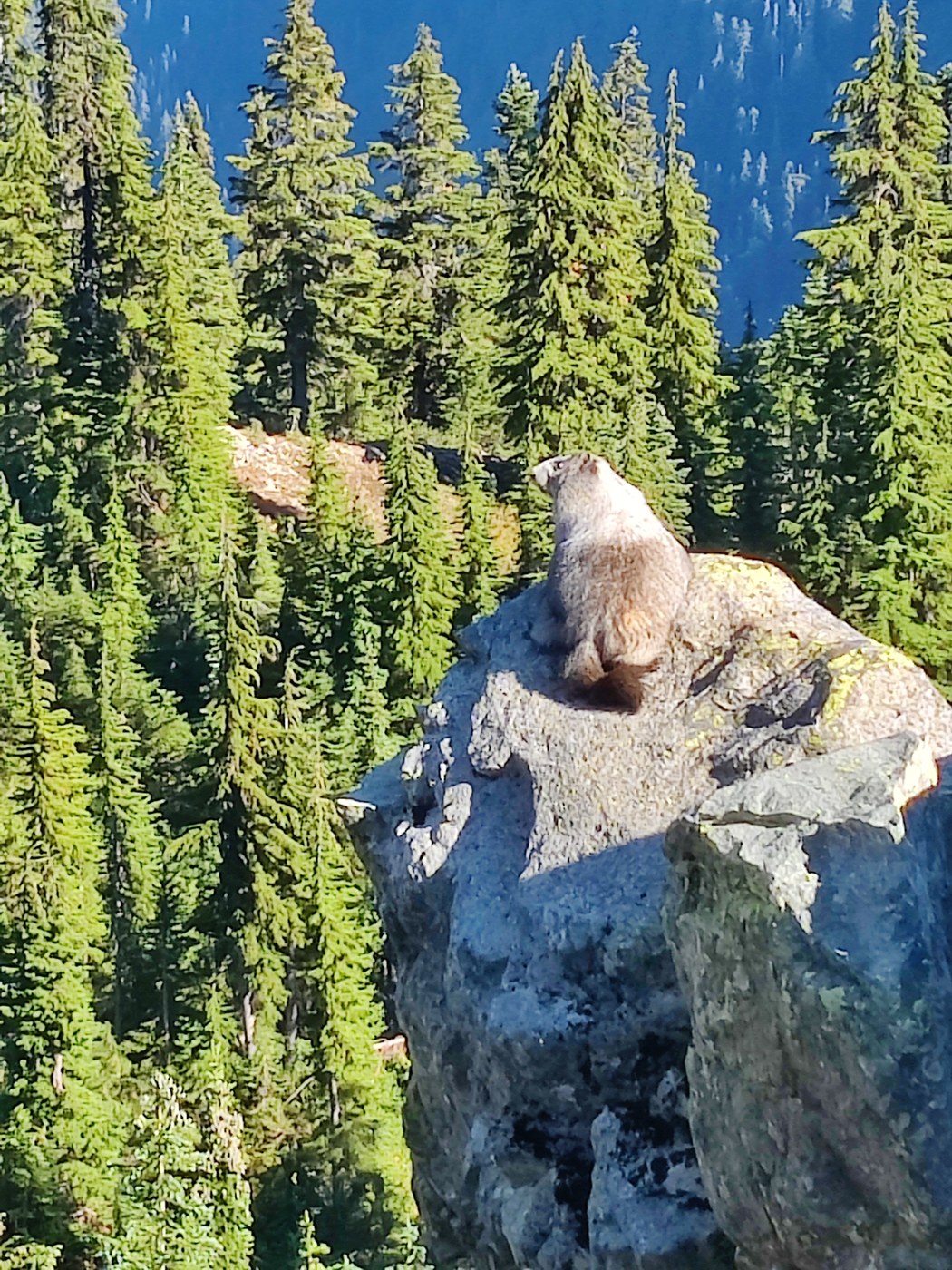 The next morning, we climbed up the western bootpath to Rampart Ridge, stopping for pikas scurrying with fern clippings in their mouths. The ascent to the peak is a short climb with views of Ramparts and Rachel to the east, Rainier and I-90 to the west.