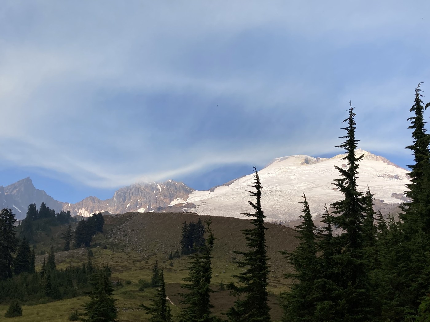 - Smoke: Thick to the south on Saturday but Mt. Baker itself was clear and the air felt clear at Railroad Grade until late Saturday afternoon. Mt. Baker and the surrounding peaks all disappeared in smoke at 4:30pm Saturday as it blew in on a continuous south wind. Smoke remained the remainder of the evening. North breeze overnight cleared the air around Baker and Railroad Grade for good views but it got smokier on the way down and out.