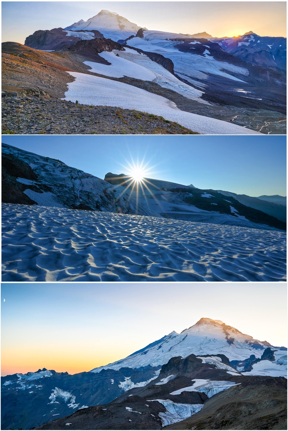 The attached 4K video captures the trail out to Camp Kiser, although with lots of glare as we were hiking into the sun until it set behind Baker :) This is a moderate hike that allows one to just soak in the surroundings.