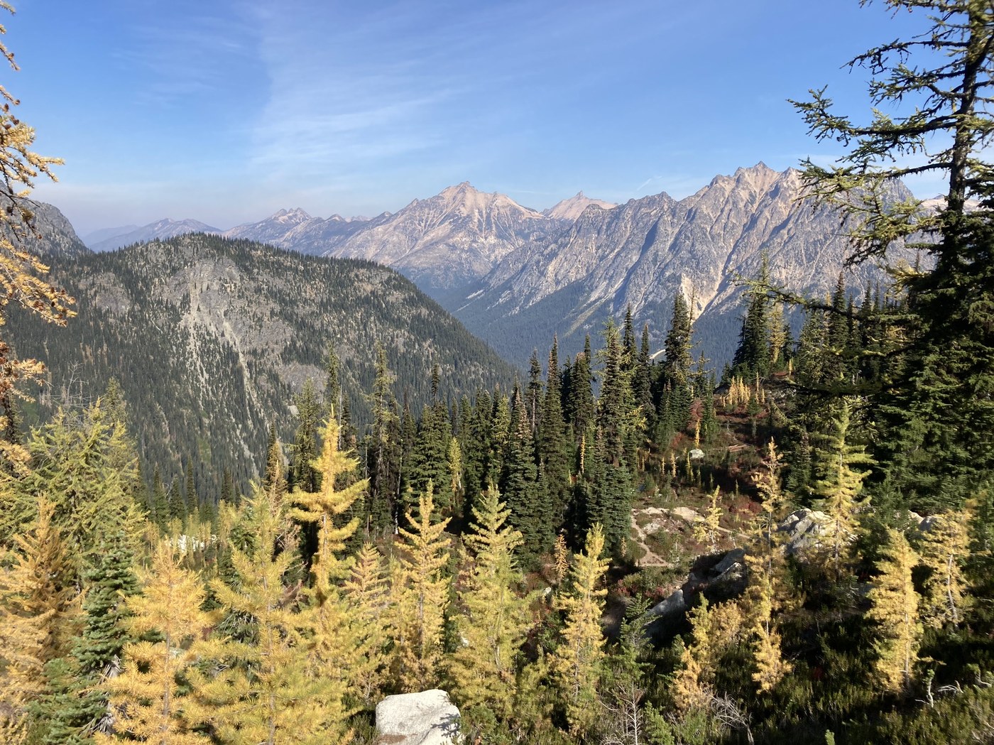 Trail was beautiful today!! A full parking lot but since it is a loop trail had plenty of solitude. Plenty of beautiful larches and fall foliage. Amazingly little smoke blocking views considering how smoky it was around Ross and Diablo lake on the drive over.
