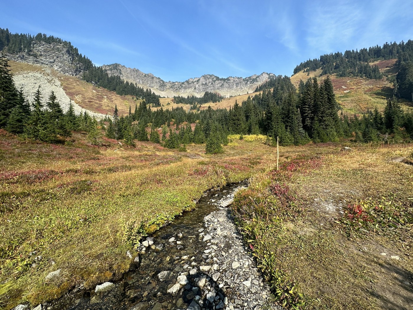 The theme of today: things aren’t always where you expect them to be! Like many others have noted, got briefly fooled by the Google map directions. Go a little further than it says, East Church Mountain Road is clearly marked. At about 1.4 miles the trail itself veers significantly away from the Gaia trail, including the USGS Topo layer, which briefly freaked me out. But since the trail was so clearly defined, and I was 100% certain I had not missed a turn off, I kept going, and it join back up with the map trail. Lastly, there is a peaked to be bagged here (the Church Mountain Old Lookout Site) but it is NOT Church Mountain. Numerous trip reports, and even Peakbagger reports, suggest otherwise so I wasn’t sure what I would find… But sure enough the true Church Mountain is whole different animal, 300 vertical feet and what looks to be very exposed, technical climbing away. Still a great day—coming out of the treed switchback slog into that meadow took my breath away (even more than said switchbacks!).
