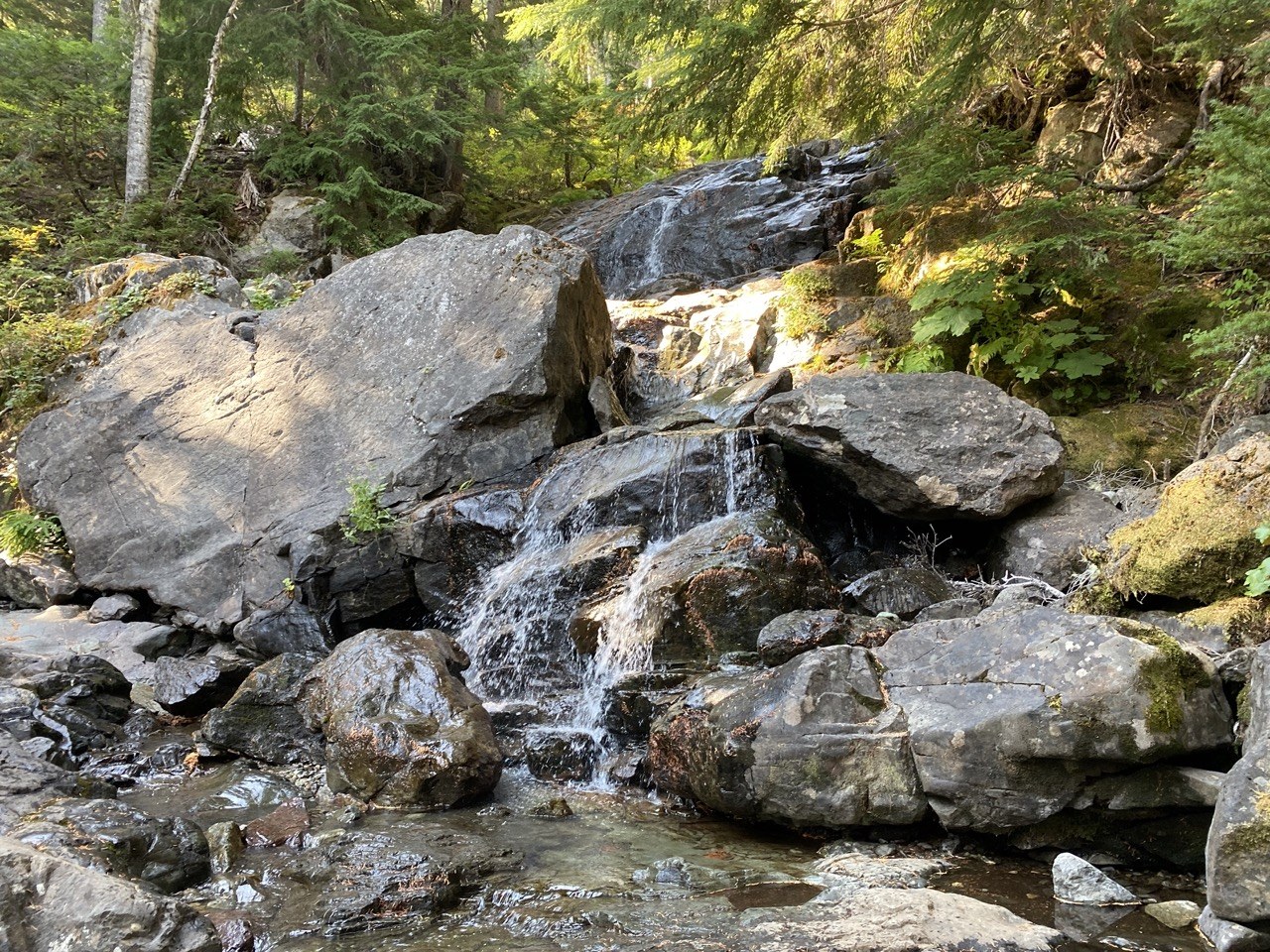 This was our first time to hike this trail and I must say it's going to be one of my favorite hikes to a lake. I liked the character of the trail, the frequent encounters with the Box Canyon Creek, the views of the Hibox Mountain, and the beautiful lake with comfortable entry points. A beautiful sunny day though a bit of smoke was still around, but much better than at home. Good exercise, too.