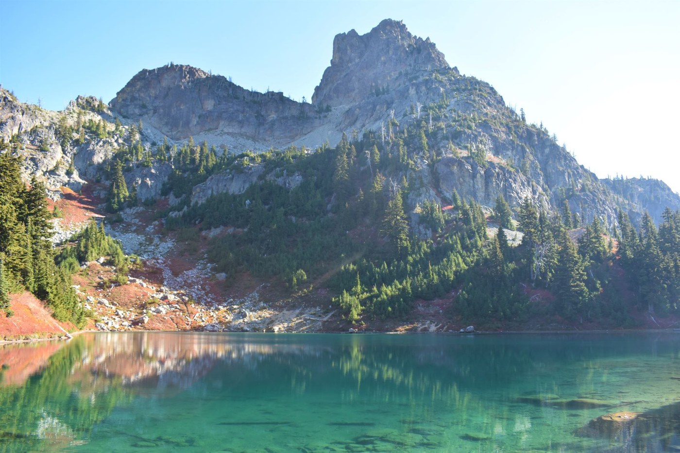 Arrived at the trailhead (Cathedral Pass #1145) at about 5:30am and took a nap until light enough to hike without a headlamp. The road was in excellent condition, unlike in years past. The Scatter Creek ford was dry - first time I have ever seen that. Two vans in the parking lot, both apparently over-nighters.