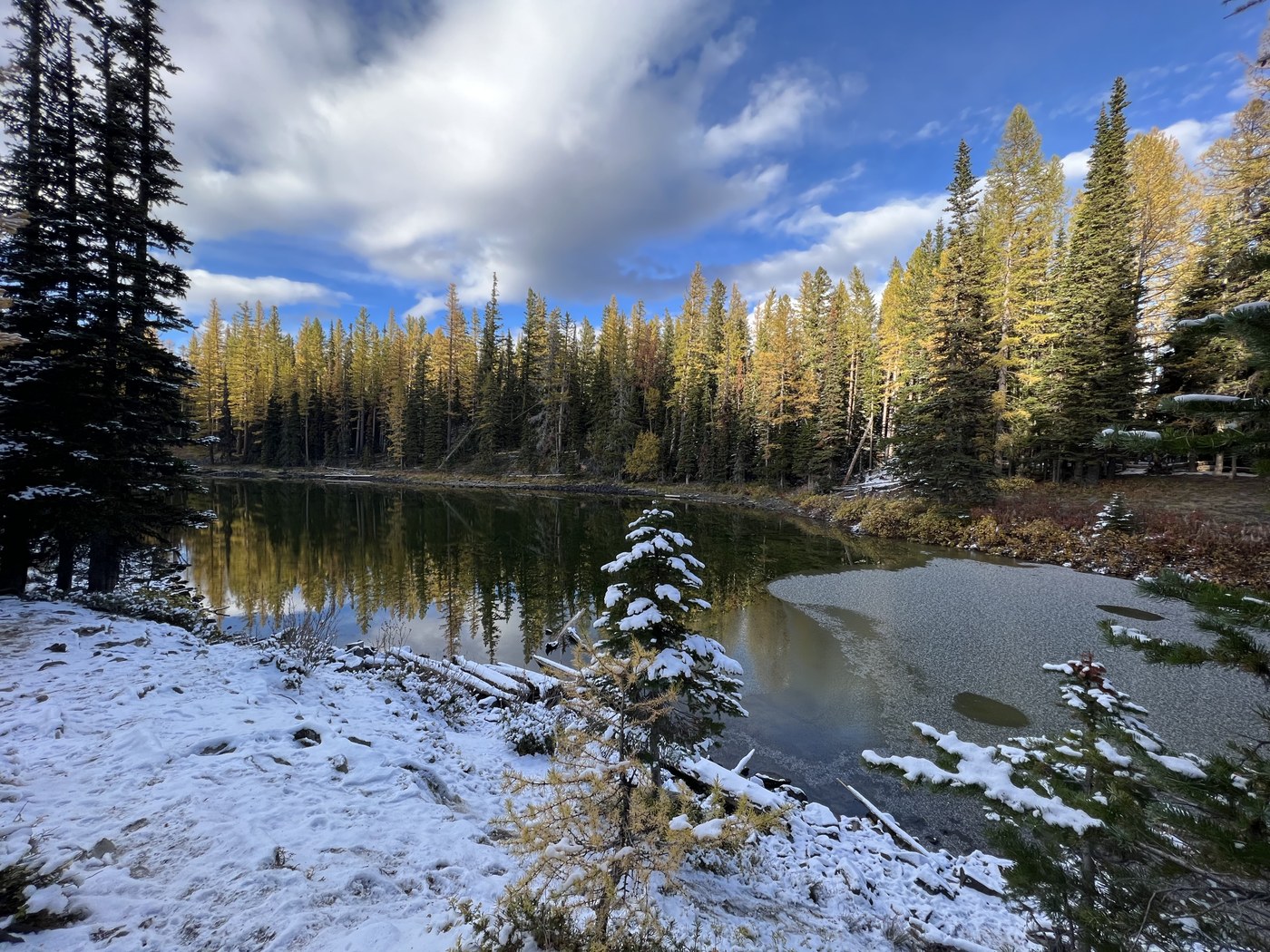 This was our first time seeing larches and we loved them! We could see them from the road and parking lot as well. There was a bit of snow on the trail, but it wasn’t slippery this afternoon. The larches are just beautiful and some are already dropping needles, so I think it’s the perfect time to do this hike.