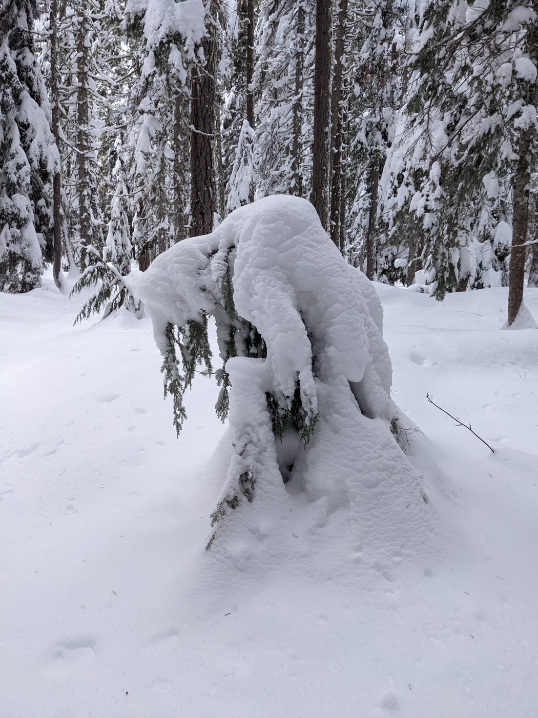 I encountered the tree in the photo as I was exhausted from breaking trail. I think we each understood the other perfectly at that point. LOL
