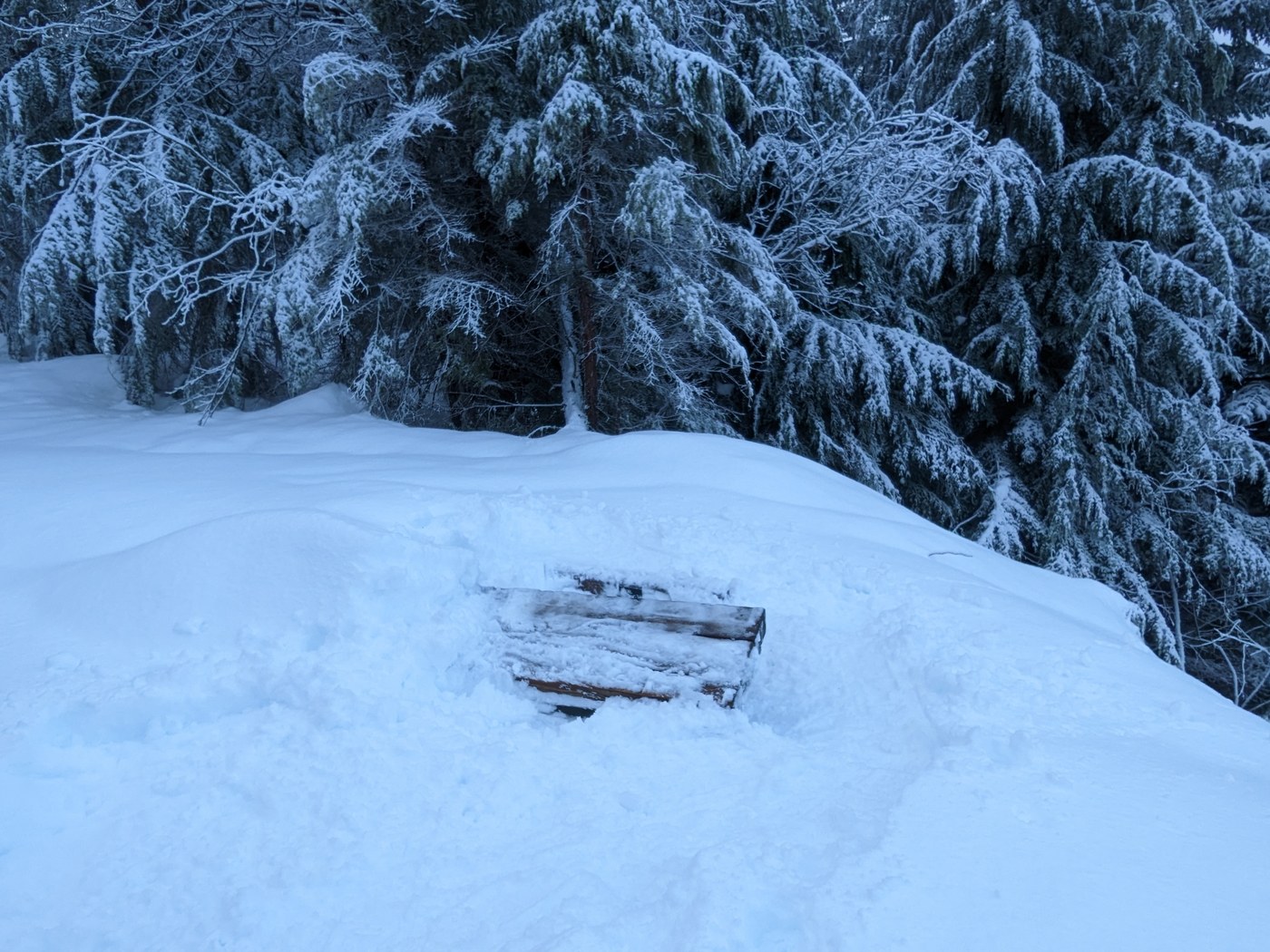 We put snowshoes on around the 2-mile point going up. Our trip out and back combined with at least one other person snowshoeing in front of us has made a pretty good track. It was soft in places just off the trail, so glad we had snowshoes. The bridge crossing had a few inches of packed snow on it, so not hard to navigate. There were two places the tracks split and we weren't sure which was the trail and tramped off in the wrong direction before checking our GPS map. We'd definitely need the GPS map if it snowed and covered tracks of those who had gone before us.