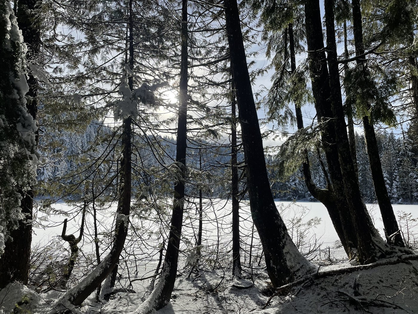 Deep snow on basically all parts of the trail, so lots of pot holing. I was very thankful to have poles (friend did fine without them), but we both wish we had gaiters or snowshoes. Dogs did great. Took 4 hours because I was going veryyy slow recovering from a sprained ankle.