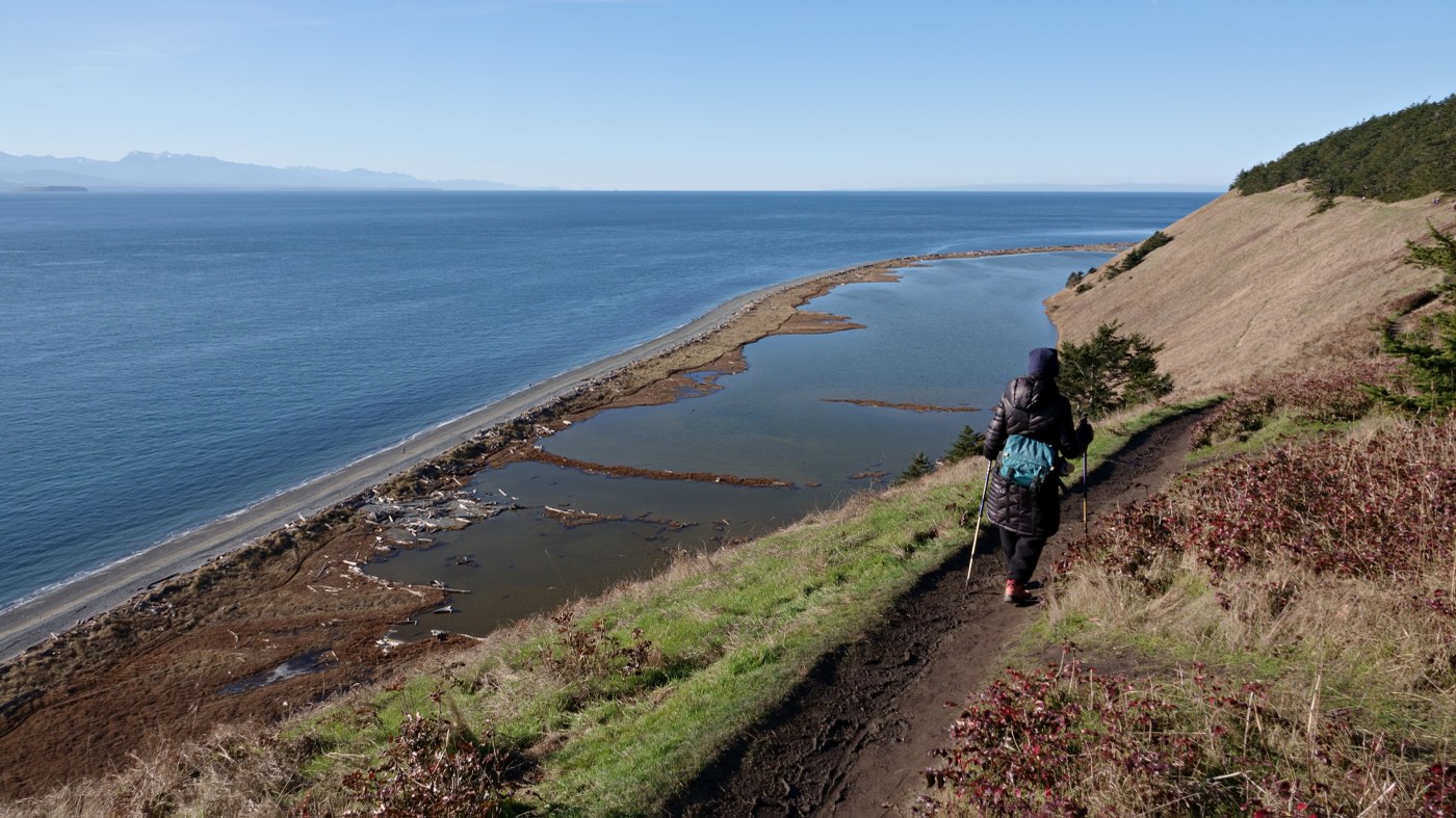 We hiked the loop on a gorgeous, sunlit, exceptionally clear Sunday. By all standards, this is special even if you've been there before: 270 degree view of sea, two mountain ranges (snow-covered yesterday) and 3 big volcanoes.