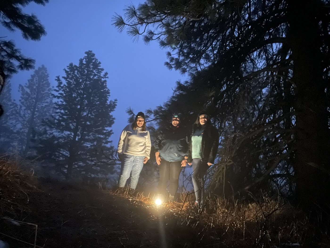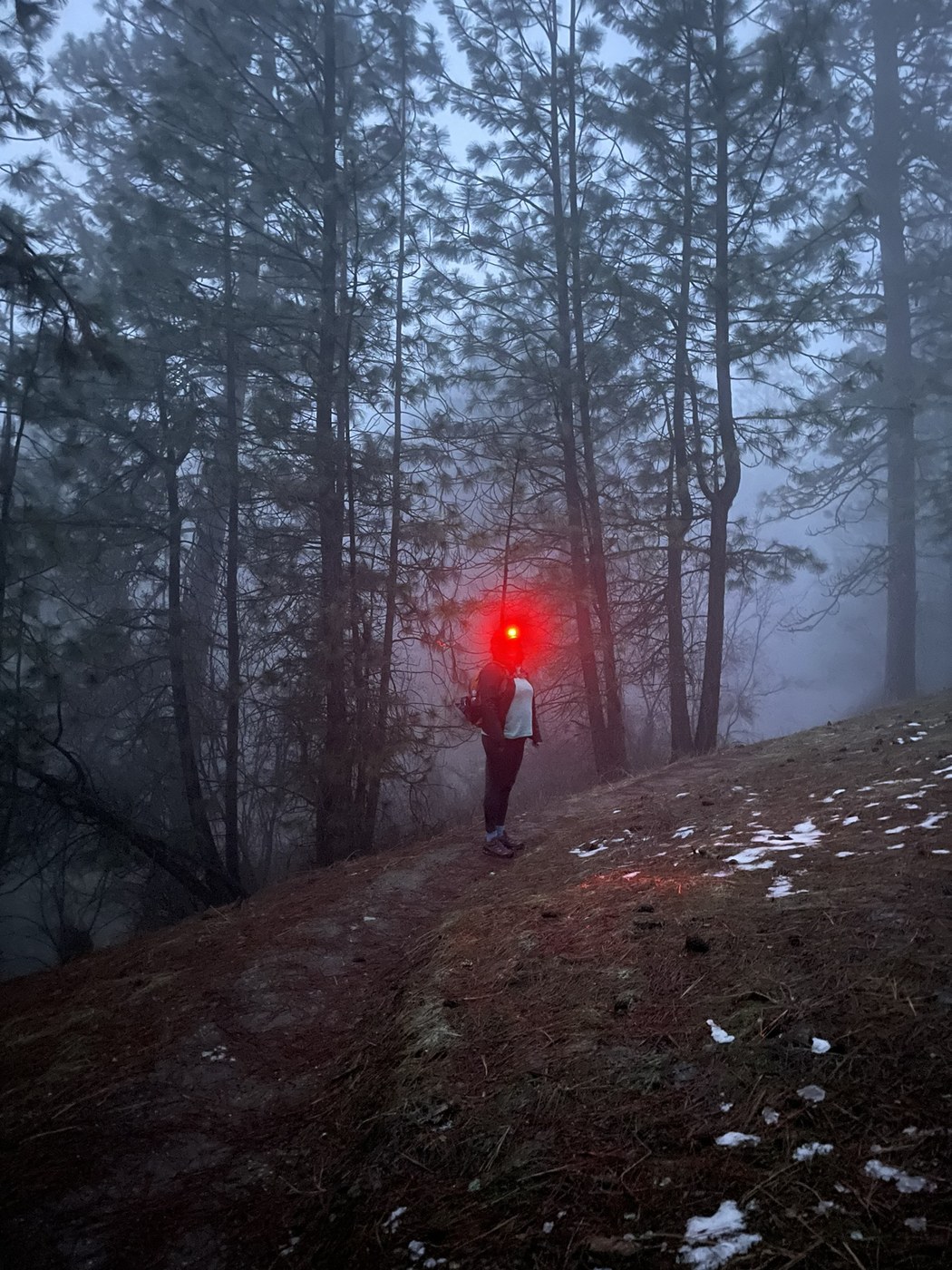 Five of us, including one little person in her carrier, headed out hiking for the full moon. Moon never made an appearance but we had fun anyway. Foggy night with drizzling rain so we kept our hike short and sweet. Hiked up Arrow Leaf trail and about a half mile beyond before turning around and hiking back down to the Lost Apple Trail to make a loop back to trail head. A little over 3 miles and approximately 500 ft elevation gain/ loss. My favorite part of this trail at night is the lights from the Spokane Valley at every viewpoint! Plus the extremely well built trails by local volunteers. #lovelocaltrails