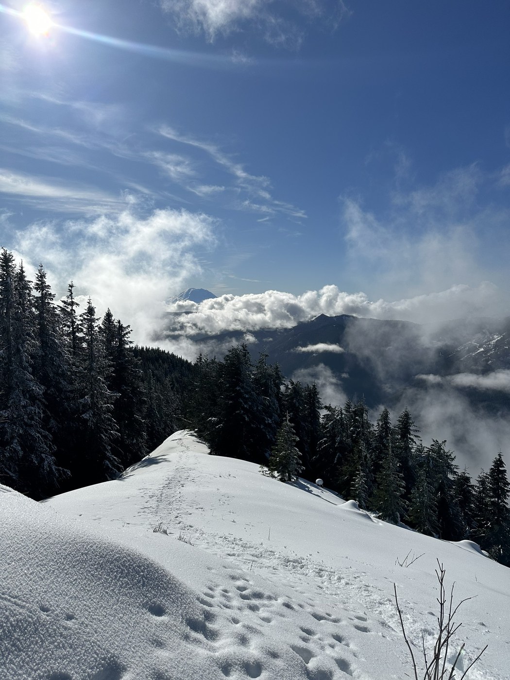 Lots of parking lots of snow, nothing too difficult about this hike the trail is well maintained and graded never too steep, beauty of a day