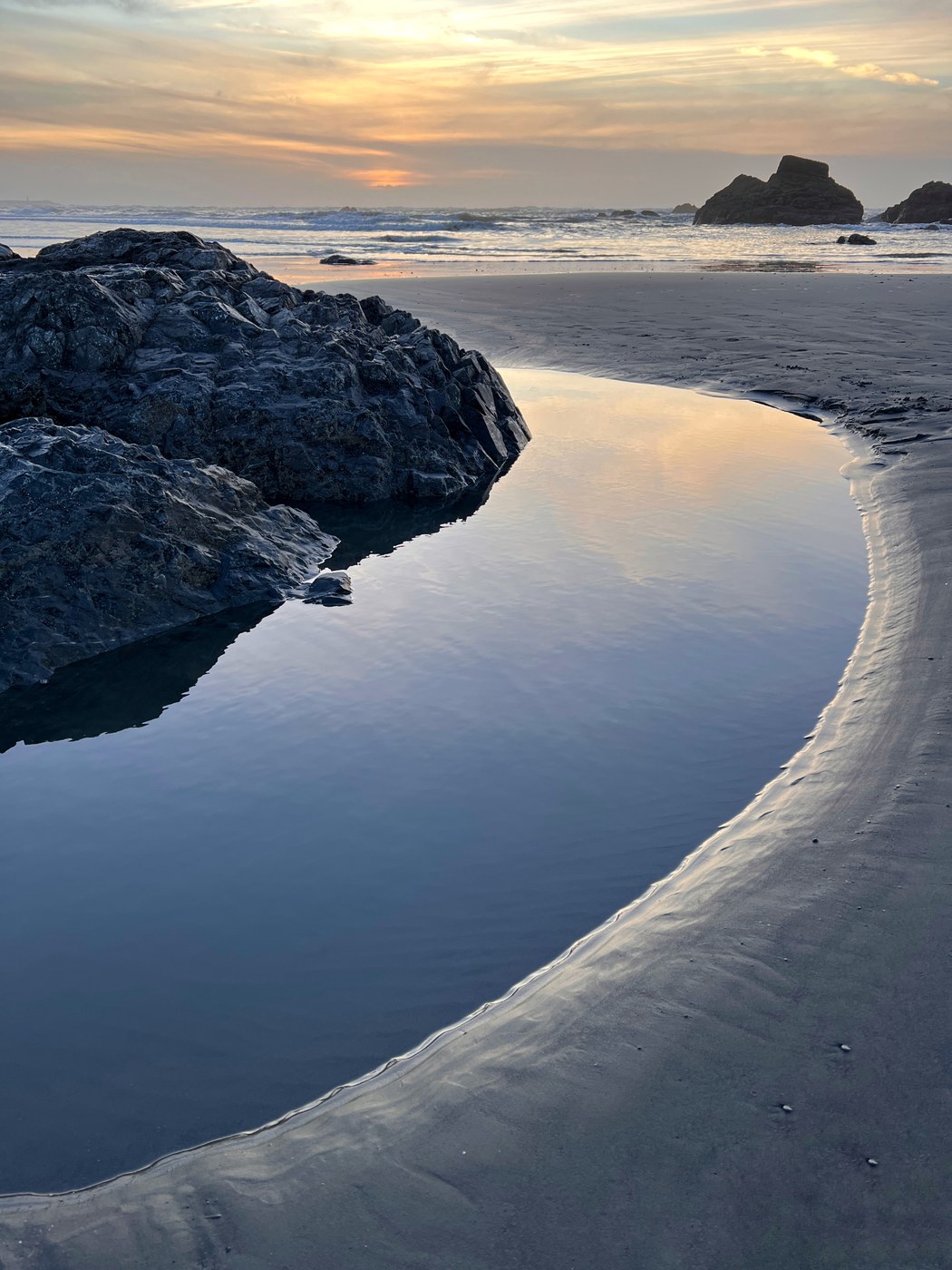 Drove up to Ruby beach for sunset and photography. The parking lot and road leading up to it are much improved now. 1 of 2 restrooms open and stocked. Stream crossing wasn't difficult but it was low tide and I crossed downstream where it was wide enough to be relatively easy (though I had trekking poles just in case). Sunset was fine but the clouds did not quite catch color as I had hoped.