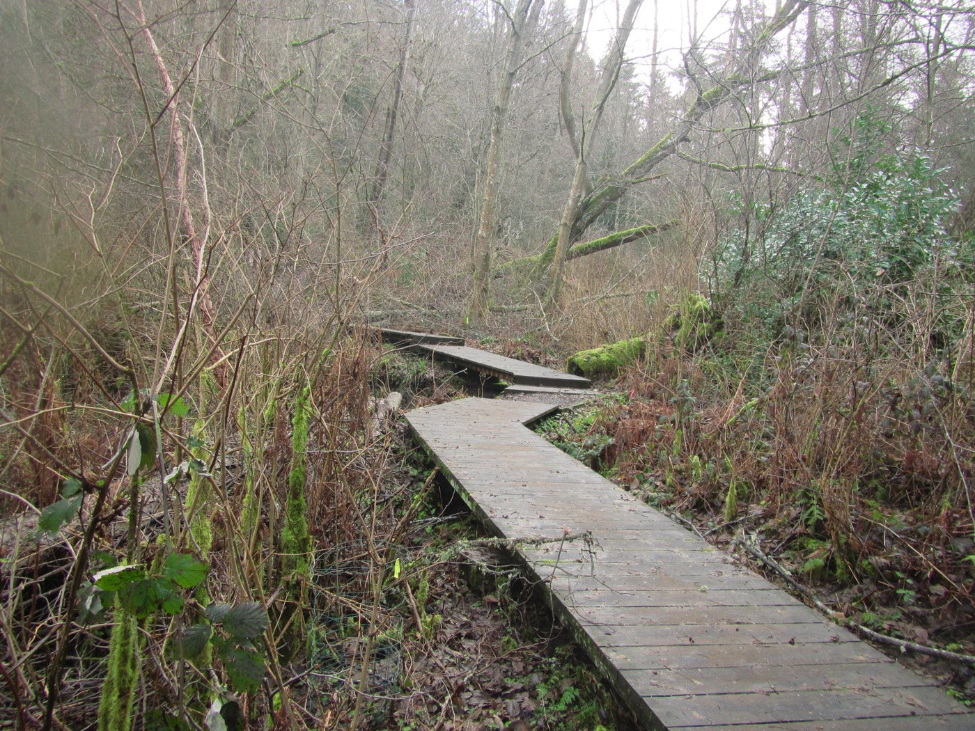 Today the hiking grandmas did the Grand Edmonds Park tour. Actually this grandma injured her neck and shoulder and couldn't use hiking poles, so that is a bit limiting, along with the weather, for explorations in more hilly terrain. We started at the Park and Ride by the train tracks, walked down to the ferry terminal to use the restroom there and headed up the hill on Main Street, R on 5th and then up Walnut, (gotta get a hill in!) to Yost Park. Unfortunately, the main trail in Yost had a bridge out and was closed, so we hiked an alternative route out to Main again. Following this road, we ended up at another little park called Pine Ridge, where the trail took us by a little pond with some pretty tame mallards and Canada geese. Thru Pine Ridge, down 83rd to 200th, then down 80th to the next park, Sierra, but no loo, so we moved on along. We stopped at Seaview for a rest stop, and then on to Southwest County Park. We just hiked thru a little bit of it, it was starting to rain, and we were getting hungry. Even tho this was close to the road, it was a pleasant walk thru woods. Now on the way back, we walked down Olympic View Dr for our last little stop at Stamm Overlook. Not much to see except a big dark grey wall of raincloud coming over the water. We went back via Soundview Dr and had the best views of the day, it had somewhat cleared off and there was some blue sky. We ended back at Bracketts Landing and ate lunch at the Senior Center. We had planned on walking along the marsh too, but walking on cement is very hard on my feet, so this grandma was done for the day. 9 miles total, urban walks can get you in shape for hiking!