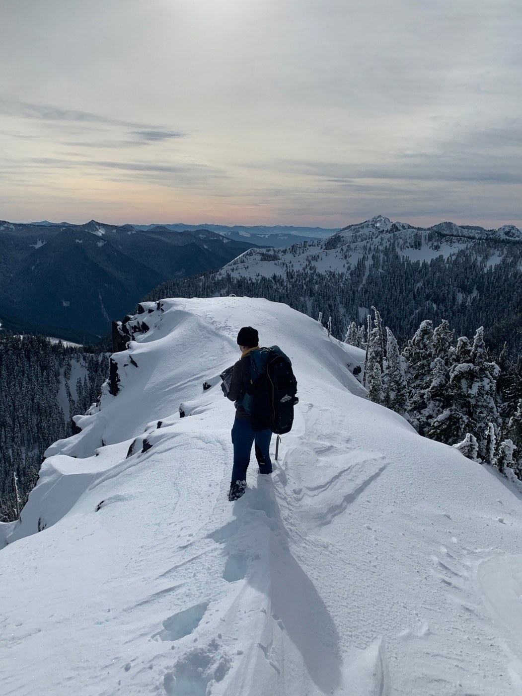 The ridge up and the peak were beautiful. It was still very clear and we could see Tahoma in all her glory, Mount St Helens off in the distance, all the way through the Sound to the Olympics, and over to Mount Stuart reaching out of the Enchantments.