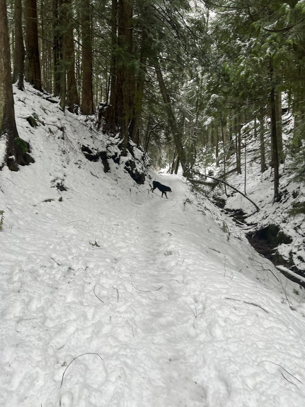 Snow started about .25 into the hike, micro spikes highly recommended! Beautiful in the snow.