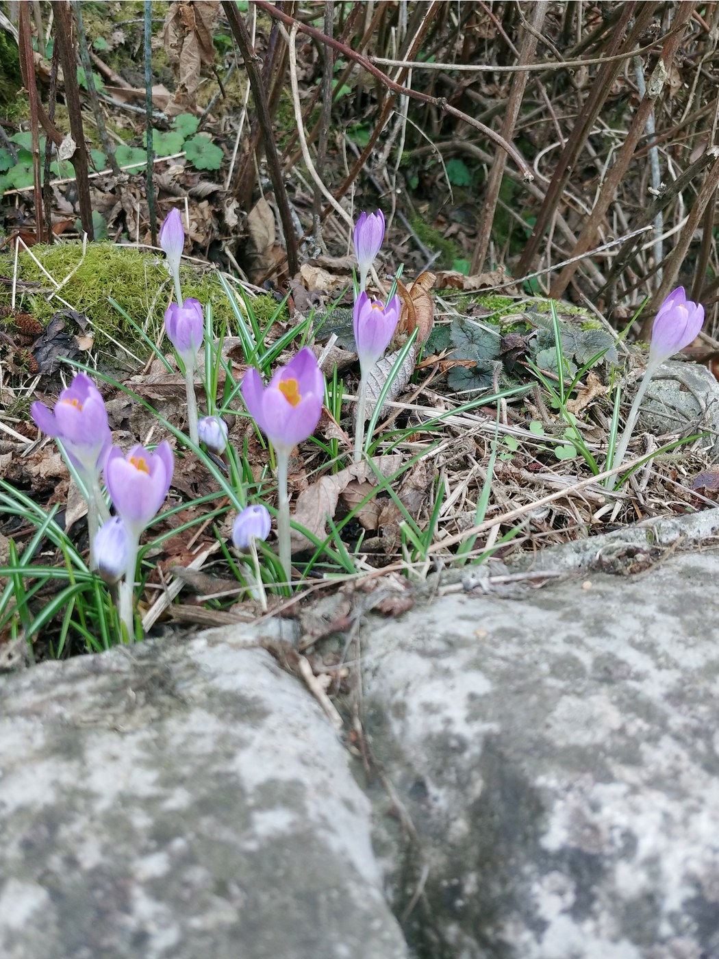 Some early wildflowers are out. In the sunnier areas a lot of Indian plum is showing its blooms, and we noted a a small group of crocuses (photo.)
