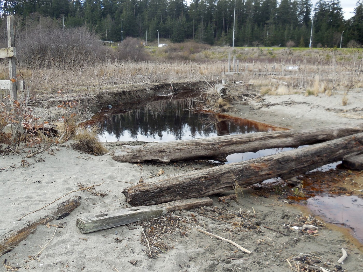 The breach between the former fresh water wetland and the ocean will be allowed to remain (photo, ) and the wetland will be allowed to transition to an "estuarine" wetland with salt water.