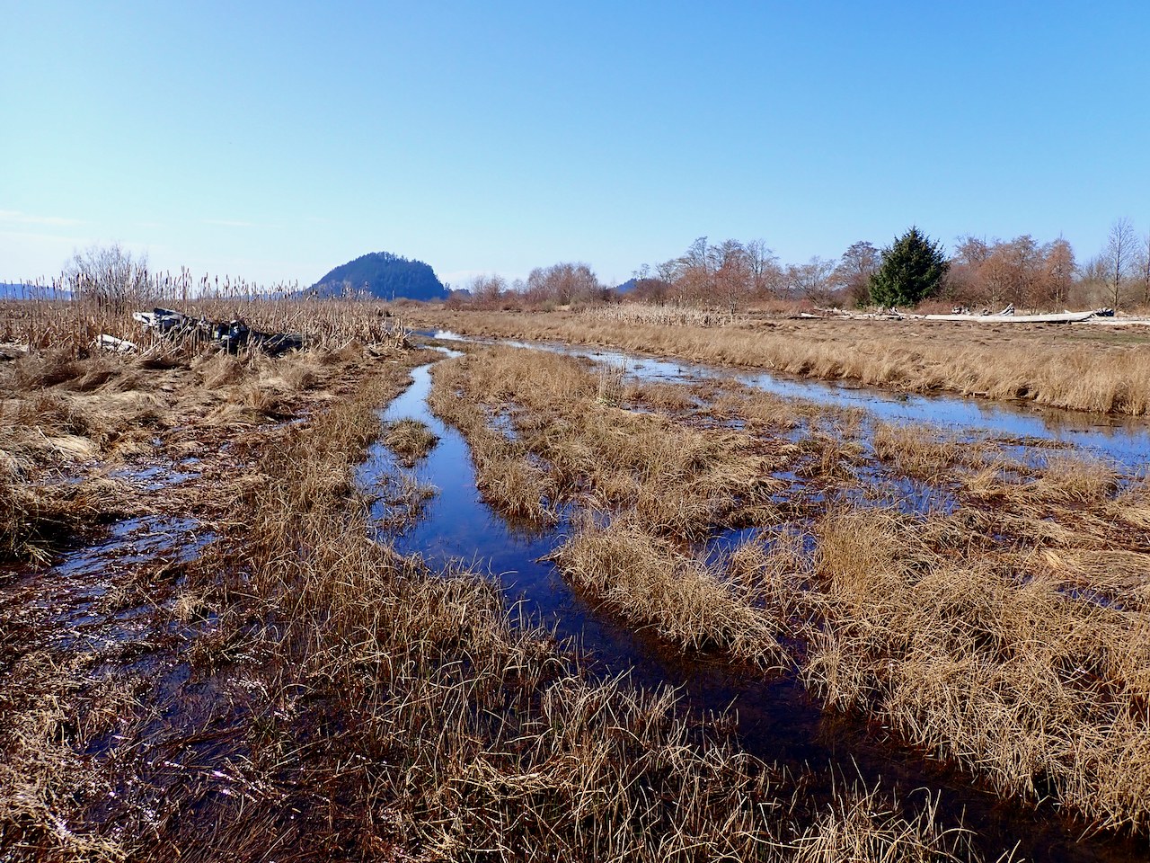 We took the short walk out to Craft Island on a sunny spring Wednesday afternoon. The drive to the trailhead is straightforward and there is good parking along the roadside below the dike. Turning around is a bit of an issue, though, as there is no turnaround at the end of the road and the narrow road is flanked by deep ditches.