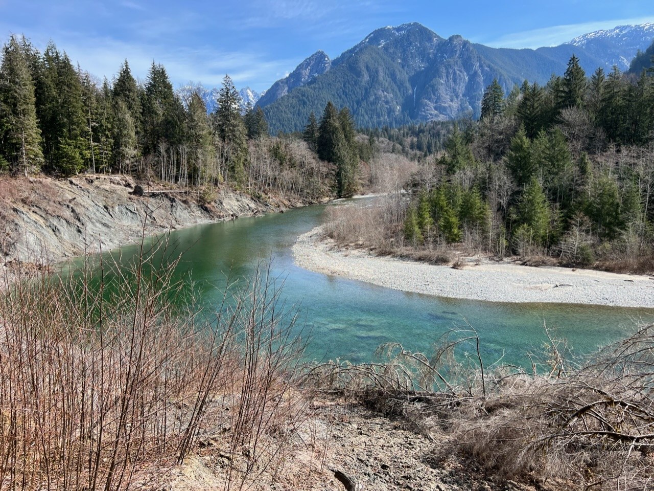 Today we tried hiking out on the Snoqualmie Middle Fork road and had two great early spring hikes. The road is clear of all debris and has been repaved over the crushed gravel area before the 2 dips. Our first destination was Garfield Ledges, the road seriously deteriorates after the Middle Fork parking lot. The road is extremely potholed on both sides of the Taylor River bridge and could eat sedan type cars. The vault toilets are open and stocked with supplies. It was 47 degrees with mostly sunny skies when we started out just after 10:00AM. Trip reports from last weekend indicated snow on Garfield Ledges but it has completely melted out. The trail was in great condition and we had it all to ourselves. Once at the ledges we took a few photo ops to capture the great the view under partially cloudy skies. We passed our first hikers of the day when we were almost back to our vehicles. Our next stop was the Oxbow Loop trail. Many more folks were out enjoying this loop dappled in sun and green sprouting up everywhere. A few merganser ducks were hanging out in Oxbow pond and we heard several woodpeckers knocking in the area. To add more mileage we crossed the road and walked up the Bessmer road past the blue gate. We turned back just before the logging staging area where the road intersects with the CCC trail and ended up with a 6 mile day. Another fantastic day out in nature with friends.
