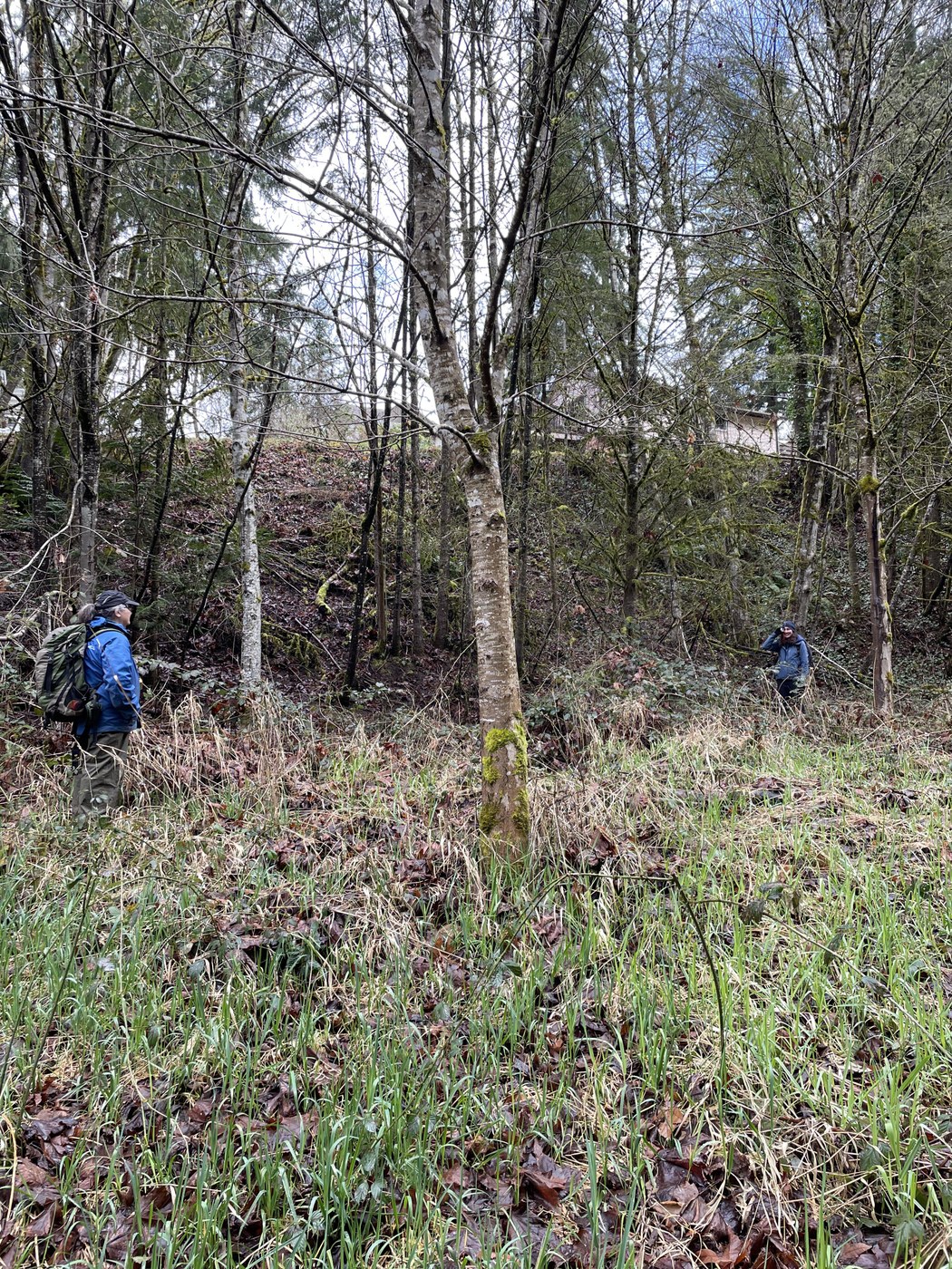 I joined a couple of WTA staff, volunteers and community partners in the beginning stages of creating an ADA trail for this natural area. We did a lot of brainstorming and collaborating with each other on where the trail should begin, end and which section worked best at meeting the ADA requirements. I learned how to use a clinometer to measure the slope of different sections of the area and then once we found spots that worked, we placed flagging down for a very rough first draft of the future trail. I'm interested to see what their final decision will look like.