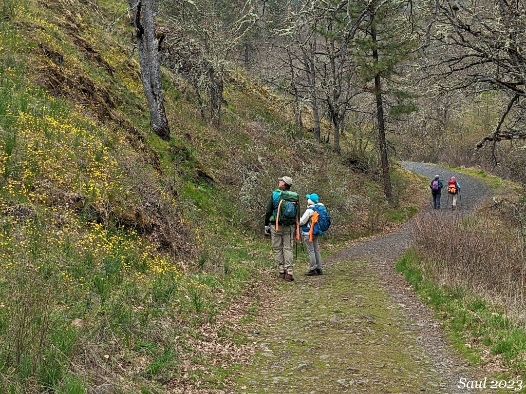 We took a leisurely hike around the Catherine Creek Arch Loop to look for birds and blooming wildflowers. In the spring, every visit brings new color displays in the changing palette of wildflower bloom so we never tire of hiking here.