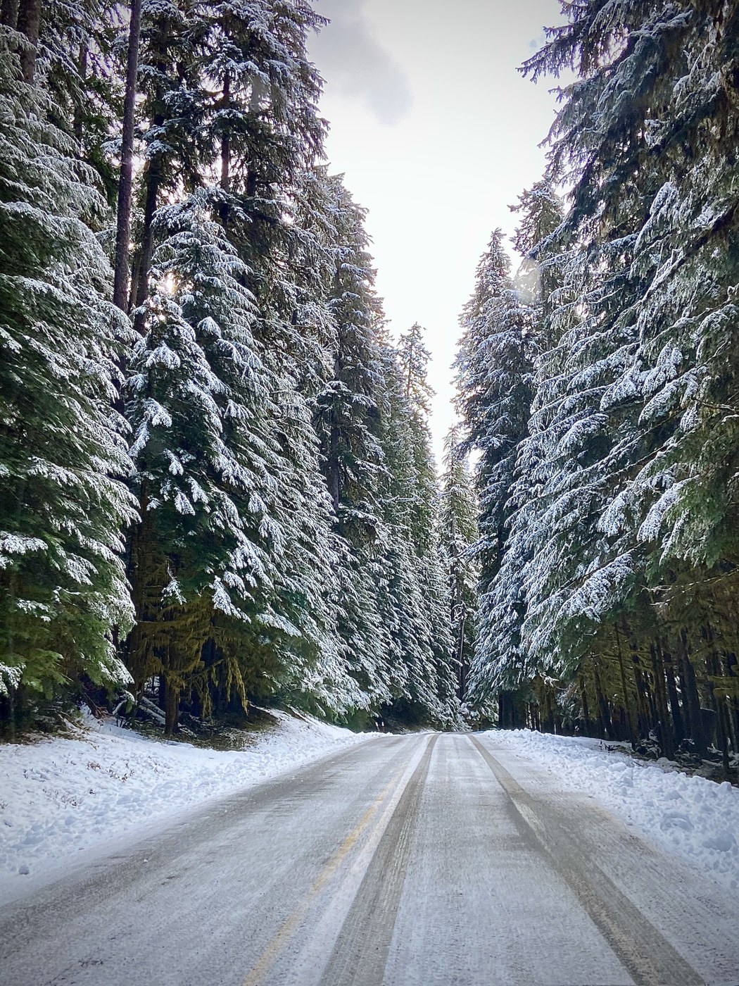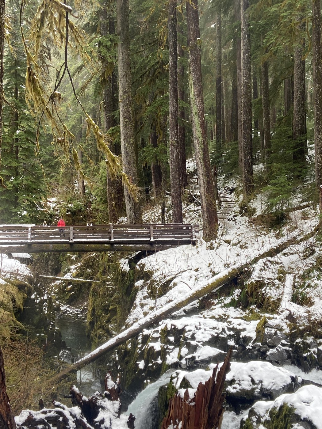 I’ve hiked to the falls many times, but never in snow! The road to the trailhead was smooth, up until the last couple miles when fresh snow and slush made things just a bit slippery.