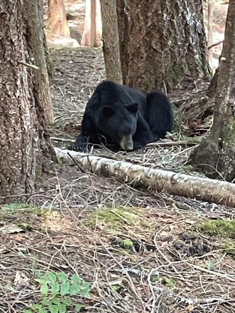 The high point of our trip was meeting up with what seems to be the resident bear. He parked himself about 15 feet off the trail just before the camp. He was very uninterested in us and a bit lethargic when we walked by him several times at close quarters. I think the warm temps made him a bit drowsy. By early evening he was more active and hanging out in the grassy areas near the inlet stream. I don't think this is a problem bear yet, but if campers leave a messy camp with food bits around, that might change. So, if you're planning to camp at Big Beaver keep a clean camp and keep the big guy at a respectful distance and everything will be dandy.