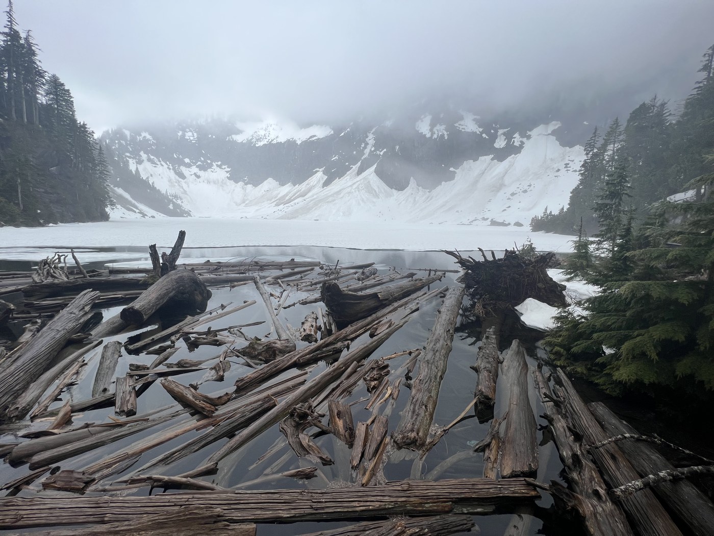 Got to the parking lot around 8 am, was about half full. Trail was muddy and there were several downed trees along the trail but not hard to get around. Trail was snow covered for about the last half mile to the lake, micro spikes were helpful and I was glad I had them but saw plenty of people doing it without them. The lake was mostly frozen over and still a lot of snow up there.