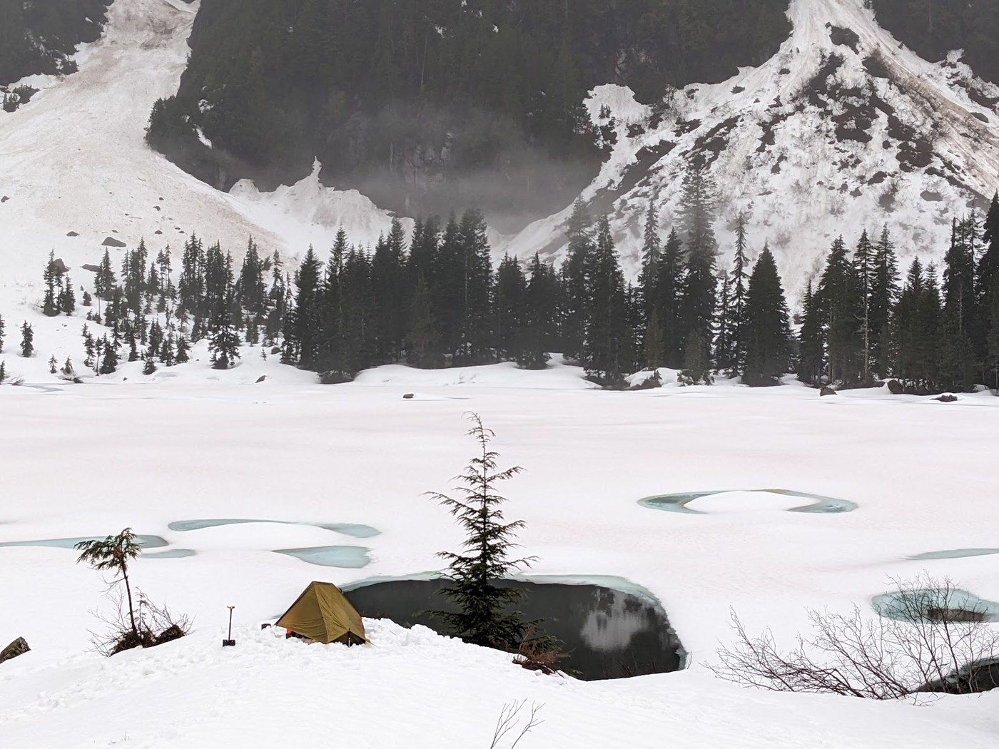 Headed up late Friday for a brief, rainy, overnight. Trail is mostly in great condition, cleared some smaller blowdowns up to about 5" but left the bigger ones to someone with an appropriate sized saw.
