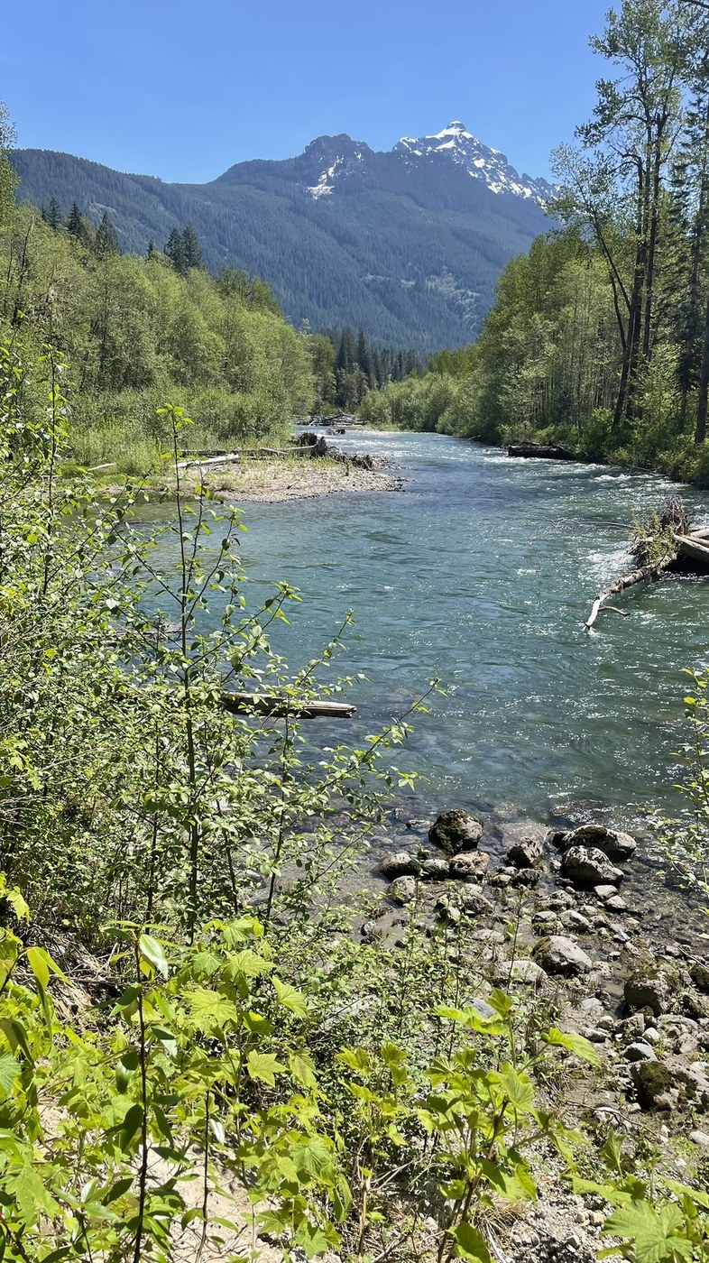 NETTLES everywhere! Watch out. Pretty trail but you can only walk for a mile before you have to turn around. We went to the White Chuck Bench trail next and that was nice too.