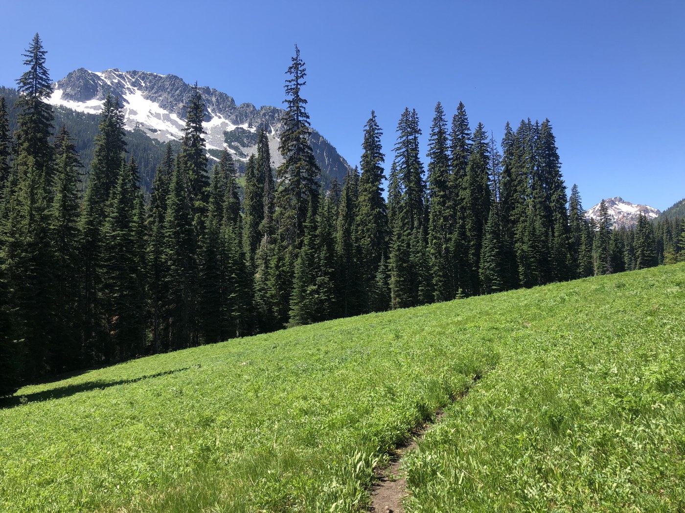 Mosquitos were annoying at the trailhead and the first couple miles of Jack, but barely existent on Meadow. That will probably change quickly. Lupine is not quuuite popping in the meadow, but I bet a week or two from now wildflowers will be at their prime!
