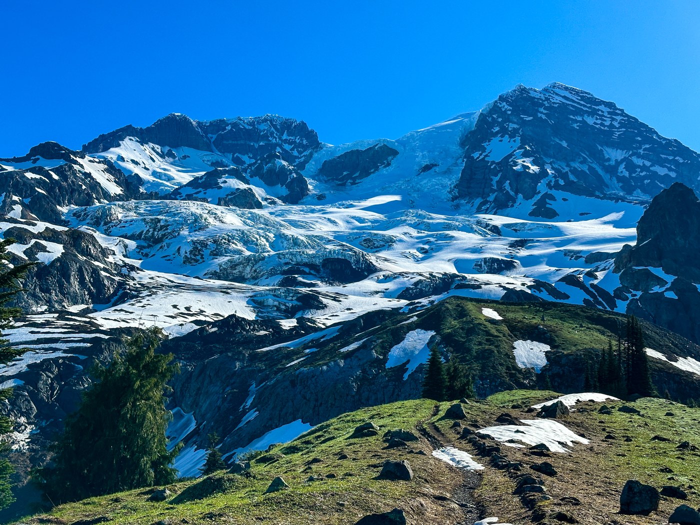 There were some snow patches starting around 4,300ft on the way up to Emerald Ridge. Easy to traverse. The patches are small enough, you can see the trail and pick it back up easily.