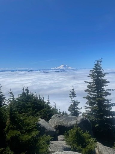 Wore waterproof shoes in case of snow patches but would have been fine in trail runners. I don't remember much (any?) water on the trail after the first mile or so grab water there if needed. Went about 0.2 miles further after the summit of Little Bandera but as others have said the route is hard to find, over grown, and has snow patches so didn't force it today. Amazing views over the low cloud cover today.