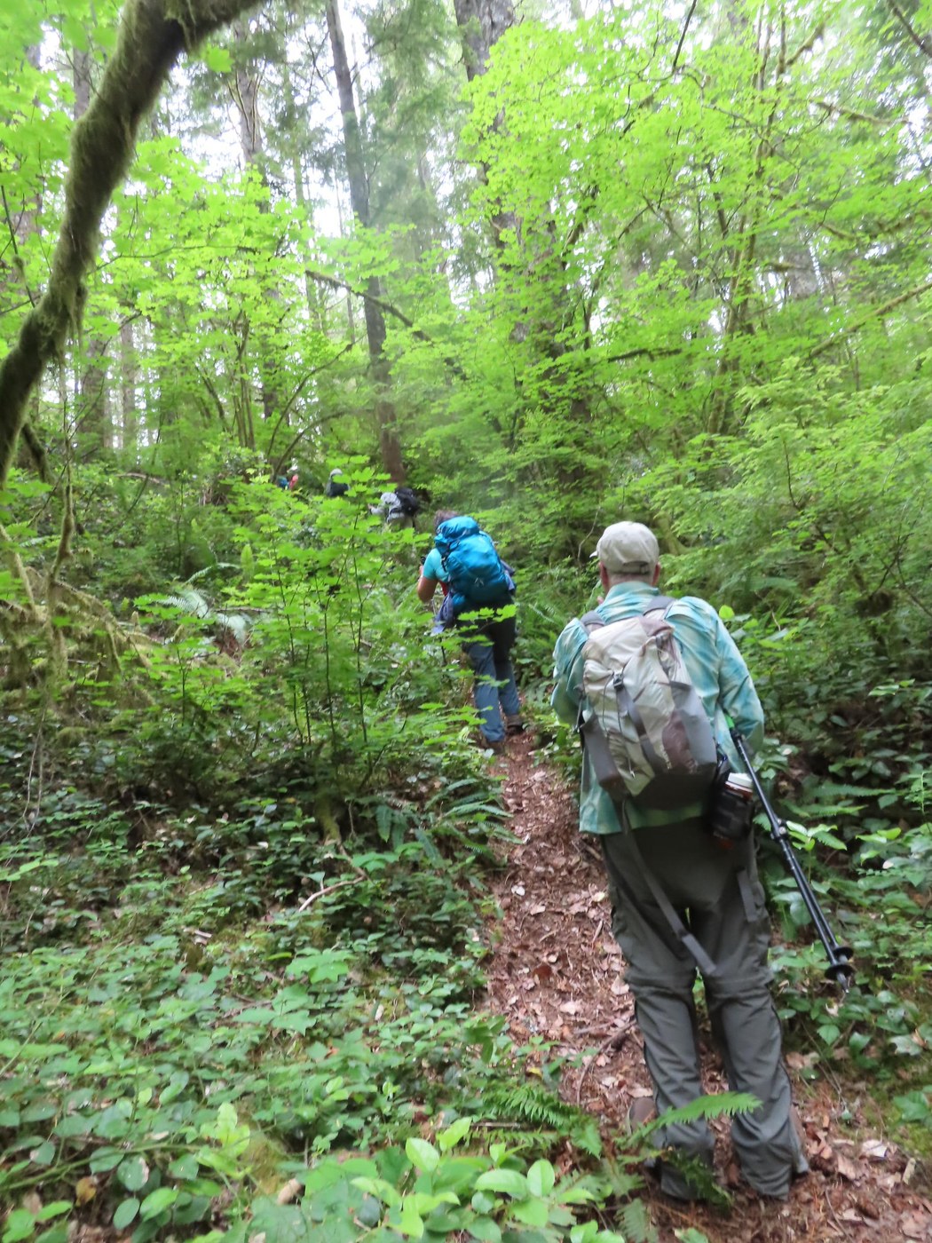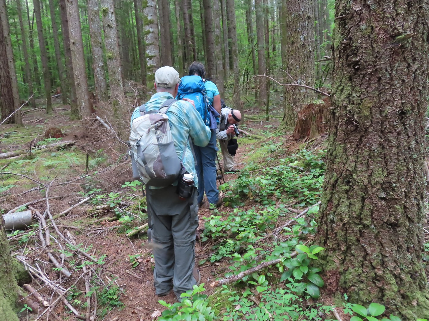 When we arrived at the junction it was about lunch time. Pete and I decided to stay at the junction for lunch while the rest of the group went up to the summit of Cedar Butte. We had been up there many times before, so found a couple of fallen trees for a lunch time bench at the junction. You have to sit on the ground at the summit as there are no seats. While eating we had to battle the skeeters trying to have us for their lunch. Three young women showed up going to the summit and one needed some bug spray. After lunch we decided to head down the Cedar Butte Trail to get away from the bugs and not wait for the rest of the group. Two sections of the trail are on old NBTC logging railroad grades. Once we got back down to the Palouse to Cascades Trail the bugs were gone, and a nice breeze came up for the 1-mile hike back to the parking lot. The rest of the group showed up a short time later.