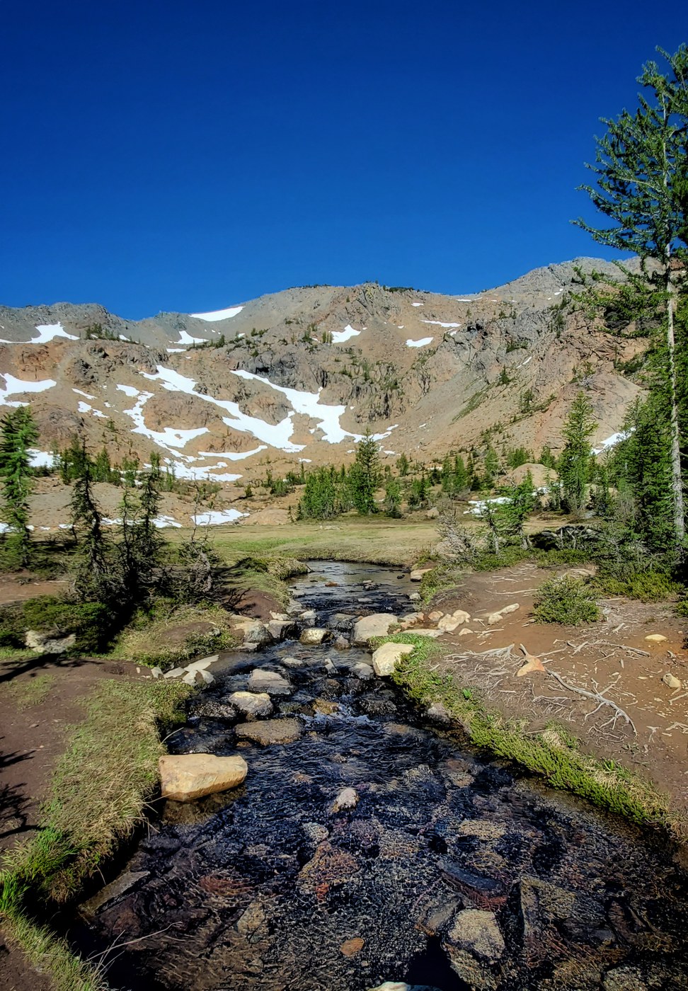 Nothing major to report on the trail all the way to the pass on the way to Ingalls Lake. One tiny patch of snow to cross right before the pass. There are a couple of small water sources on this section but I don't expect they will last much longer.