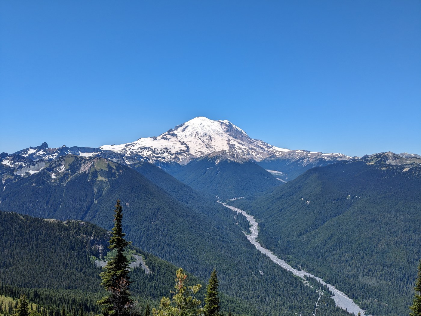 Conditions were ideal - much of the trail was shaded, and the sun wasn't too strong in the morning for the parts that were not. We had nice panoramic views at the top and even caught a glimpse of Mt. Hood in the distance!