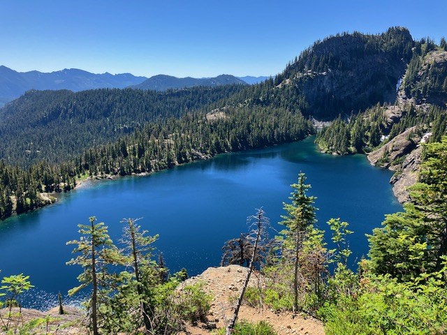 The weather was perfect and the lakes were very blue. There were many tents at Rachel Lake. On the way down from Rampart Lakes, we passed many backpackers and day hikers going up. The parking lots were full when we arrived around 3:30 p.m. and cars were parked along the road. I don’t know if all those backpackers will find a spot to pitch a tent.