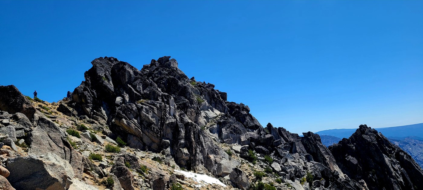 Stating the obvious, this is steep with lots of loose rock. Helmet is required. There are two options for the summit. You can put on crampons and ice axe and go up the snow, however it gets REAL steep and the run out is not great. My ice axe didn't penatrate the snow well based on snow conditions and I questioned if I would be able to arrest if needed. As with this whole hike, assess your own comfort and skills.