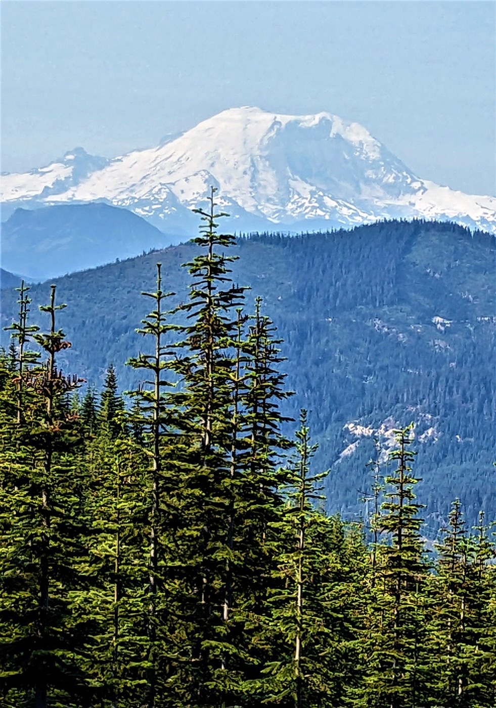 Decided to take my daughter, son-in-law and their dog up to Margaret Lake today, even though I knew it would be busier since it's the holiday. We arrived at 8:30 and the parking lot was full with people starting to park along the road. We did get parking and even though the trail was busier than normal it didn't feel crowded. Everyone we passed were cheerful and friendly with their dogs well behaved too. This is a pretty good up hill trek with views of Rainier along the way, that were so beautiful even if it was a bit hazy due to the heat. Getting closer to Margaret lake, it is down hill into the basin to reach the lake shore, so a real good work out. At the lake shore today the mosquitos were ready and waiting for lunch, so even with bug spray they were bad. All dogs coming through did have to take a dip in the lake, ours included. There were loads of wildflowers along this trail also. A very beautiful trail.