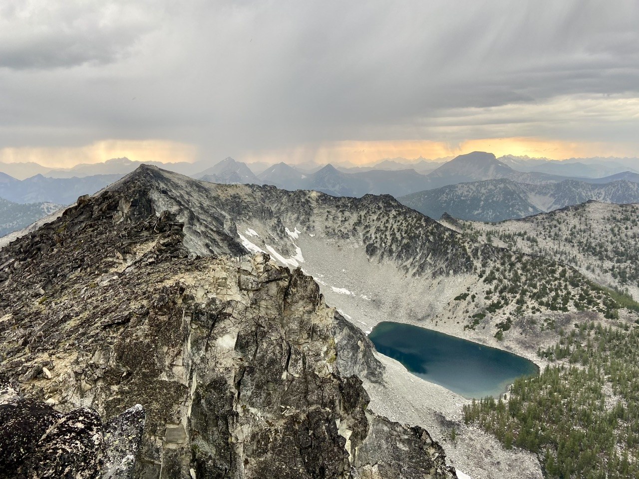Big Methow day... Beautiful, hot(!), hazy. I knocked out a few miles on Wednesday night from Crater Creek TH and found a spot to test a bivy I recently bought, then on Thursday I linked up these 6 peaks in a clockwise loop. Best sections were the scramble up to Cheops and the surrounding Sawtooth ridge; and the climb up the long slabby west gully to Hoodoo’s ridge.